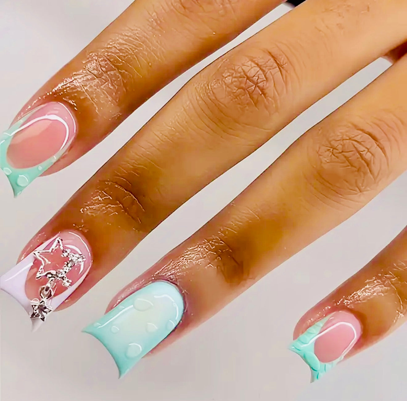Teal Short Duck Press On Nails